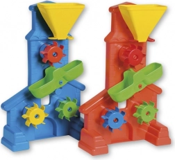 Kleurige molen voor zand en water met een hoogte van 42 cm, gemaakt van kwaliteitskunststof in Italië, bezorgt de kleinste ontdekkers veel plezier. Dankzij drie schoepenwielen, een verstelbare schuif voor doorstroomregeling en een brede, stabiele basis stimuleert hij de fijne motoriek en zintuiglijke waarneming. Geschikt voor kinderen vanaf 12 maanden.