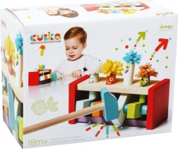 Houten hamertafel met springende clowns van CUBIKA verandert spelen in leuk leren. Kinderen slaan met het hamertje op de kleurrijke elementen en zien hoe de clowns omhoog springen – dit stimuleert fijne motoriek, oog-handcoördinatie en logisch denken. Gemaakt van esdoorn en beukenhout, met veilige, watergedragen verven en Europese productie.