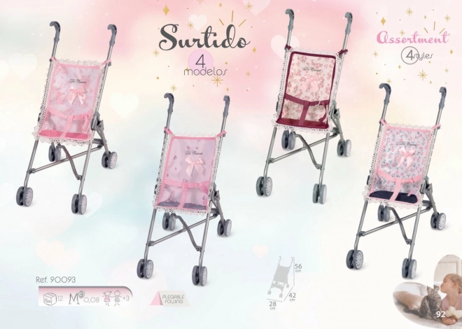 Deze inklapbare buggy van het type “parapluframe” uit de DeCuevas-collectie blinkt uit door prachtig Spaans design, precieze afwerking en zeer eenvoudige bediening. Dankzij de hoogte tot aan de duwbeugel van 56 cm is het een geweldige keuze voor kleinere meisjes die hun favoriete poppen veilig en comfortabel willen rondrijden.