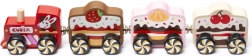 Wagons in de stijl van aardbei-, citroen- en kersentaart prikkelen de verbeelding en maken van de trein een aantrekkelijke speelgoedset.