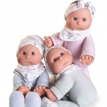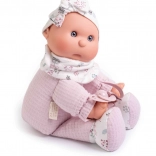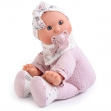 De pop is gemaakt van verzacht vinyl en biologische katoen, wat veiligheid en comfort tijdens het spelen garandeert.
