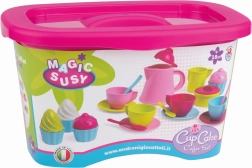 De stijlvolle koffieset van het merk Androni tovert elke kinderkitchen om tot een klein café. De set bevat alles om barista te spelen – van een kannetje en kopjes tot schattige cupcakes – en is in Italië gemaakt van hoogwaardige, stevige en flexibele kunststoffen. Dankzij 24 onderdelen, de praktische opbergbox met deksel en de veilige uitvoering is hij ideaal voor kinderen vanaf 18 maanden en ook voor kleuterscholen.