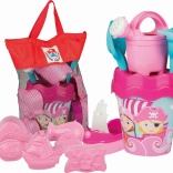 Emmer (Ø 17 cm), zeef, gieter 0,5 l, schepje, harkje, piratenbootje, 4 vormpjes