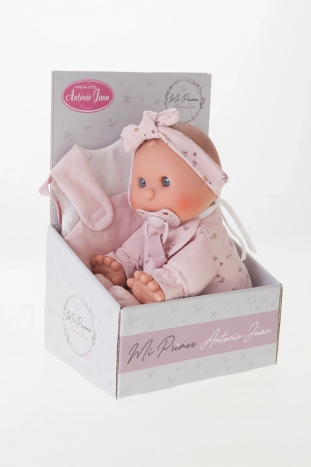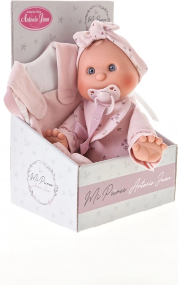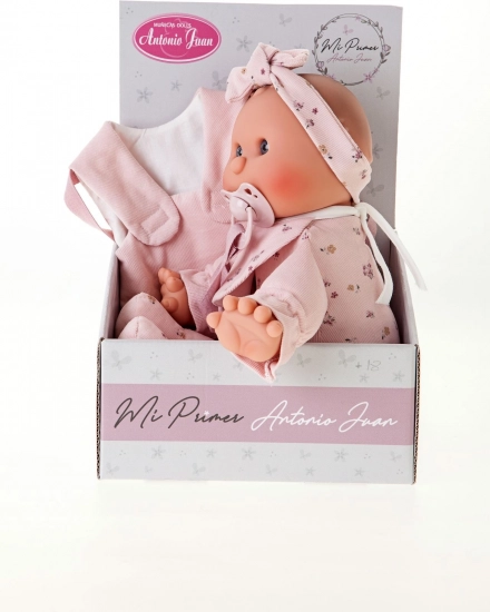 Een schattige pop van het merk Antonio Juan, ideaal als eerste pop voor peuters. Ze heeft een zacht stoffen lichaam, een realistisch hoofd en ledematen van zachte vinyl en wordt geleverd met een magnetische speen. Geselecteerde kledingstukken zijn van biologische katoen, alles verpakt in een cadeauverpakking. Formaat 36 cm, aanbevolen vanaf 18 maanden.