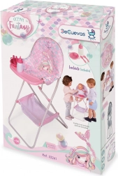 Inclusief eettray met schattige accessoires (flesje, bestek) en een praktische opbergmand onderaan. Afmetingen 65 × 32 × 42 cm (h × b × d) en hoogte tot de tray 50 cm zorgen voor comfortabel gebruik door kinderen. De hoogwaardige afwerking van het merk DeCuevas staat voor een lange levensduur en veilige uitvoering.