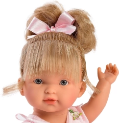 Dompel jezelf onder in de fantasiewereld met de Valeria Balletpop van het merk Llorens. Deze prachtig vervaardigde pop van 28 cm is gemaakt van hoogwaardigste materialen. Haar handgeschilderde details, evenals haar mooie wimpers en ogen, geven haar een realistisch uiterlijk.