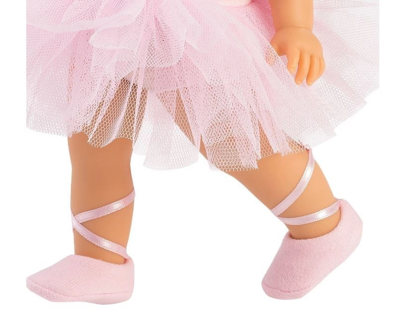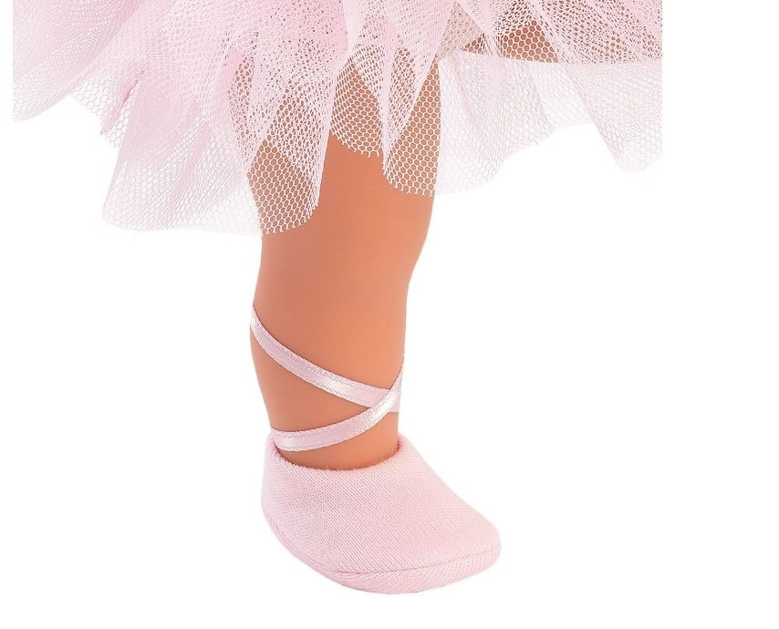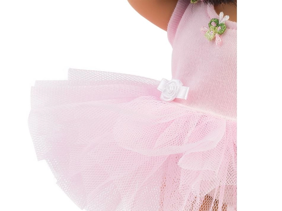 Deze prachtige Llorens-pop is met liefde en zorg handgemaakt, zodat je kinderen de wereld van ballet veilig en met plezier kunnen verkennen. Llorens Lu draagt een schitterende roze balletoutfit met een tule rok, netpanty en roze balletschoentjes. Ze heeft zwart haar met een pony en een schattige roze strik. Haar zachte vinylontwerp maakt het mogelijk de ledematen te bewegen en verschillende poses te creëren.