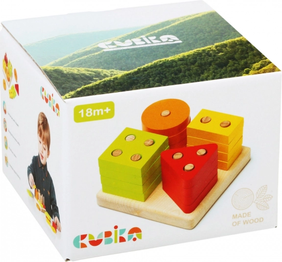 Slimme houten puzzel CUBIKA We sorteren vormen biedt 17 stukken om het plaatsen op pinnetjes, kleuren en vormen te oefenen. Ondersteunt de ontwikkeling van de fijne motoriek en logisch denken, is gemaakt van hoogwaardig esdoorn- en beukenhout en gebruikt veilige, reukloze verf op waterbasis. Gemaakt in Europa, voldoet aan EN 71 en is TÜV-gecertificeerd. Geschikt vanaf 18 maanden.