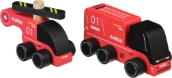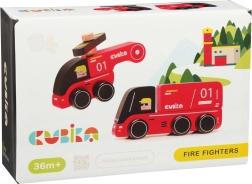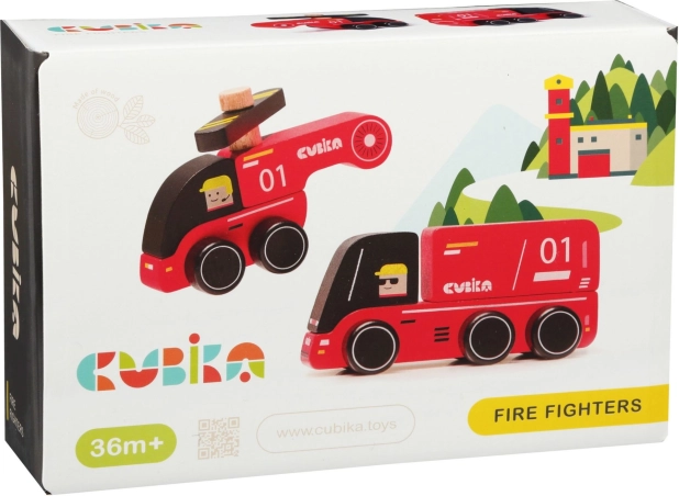 Geef kinderen creatieve speelpret met de houten set CUBIKA brandweer. De set bestaat uit een brandweerauto en een helikopter, gemaakt van het beste esdoorn- en beukenhout en gelakt met watergedragen, geurloze verven. Dankzij de afgeronde randen en de zorgvuldige afwerking liggen ze prettig in kleine handjes en stimuleren ze senso-motoriek, logisch denken en creativiteit.