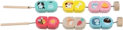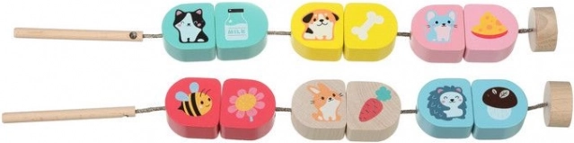Ontdek een leuk, educatief spel dat vaardigheden ontwikkelt bij kinderen vanaf drie jaar. De rijgset Cubika Wat eten we bevat kleurrijke houten stukjes met dieren en hun favoriete lekkernijen. De taak is om de juiste paren te vinden en ze aan het koord te rijgen – ideaal om fijne motoriek, geduld en logisch denken te trainen.