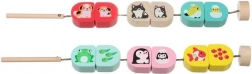 Het rijgen van houten onderdelen gaat gemakkelijk dankzij het pinnetje aan het koord. Kinderen oefenen grip, precisie en geduld bij het samenstellen van dierenpaartjes.