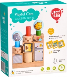 Ontdek de creatieve houten puzzel Speelse katten van Lucy & Leo, die logisch denken, fijne motoriek en verbeeldingskracht stimuleert. Kinderen leggen kleurrijke geometrische vormen met katten- en meubelmotieven op pinnetjes volgens 24 voorbeeldkaarten. Na het spelen berg je alles gemakkelijk op in het linnen zakje – een ideale educatieve speelgoedset vol plezier én leren.