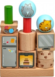 Duurzame houten vormen met fijn geschuurde oppervlakken en geïllustreerde motieven van katten en voorwerpen. Ideaal voor kleine kinderhanden.