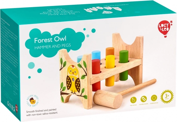 Een leuk en stevig houten hamerspel met een uilenmotief van het merk Lucy & Leo stimuleert de fijne motoriek, oog-handcoördinatie en bevat een hamertje en gekleurde pinnen. Na het inslaan van alle pinnen hoef je de standaard alleen om te draaien en kan het spel opnieuw beginnen.