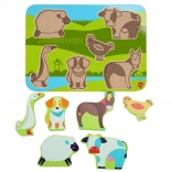 De houten puzzel met boerderijthema valt bij zowel meisjes als jongens in de smaak dankzij de diepe kleuren en het prettig gladde oppervlak. Elk van de 7 dieren heeft zijn eigen vorm en kan eenvoudig in de bijbehorende uitsparing worden gelegd. Door de grootte en dikte zijn de stukjes makkelijk vast te pakken en veilig voor zelfstandig spel.