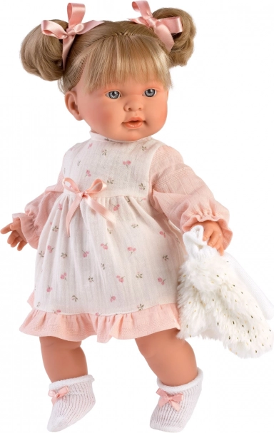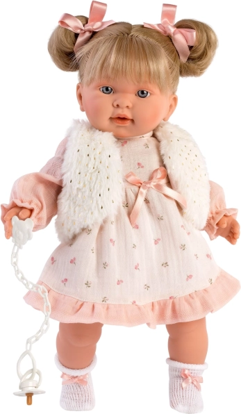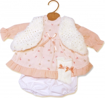Verwen je pop met een nieuwe garderobe: een roze jurkje met subtiel patroon, aangevuld met een zacht wit giletje en een comfortabel broekje. De set is ontworpen voor poppen in maat 42 cm en valt op door op elkaar afgestemde details en het gemakkelijke aankleden.