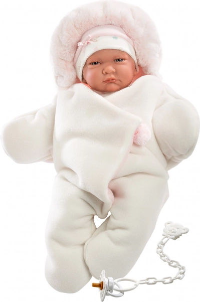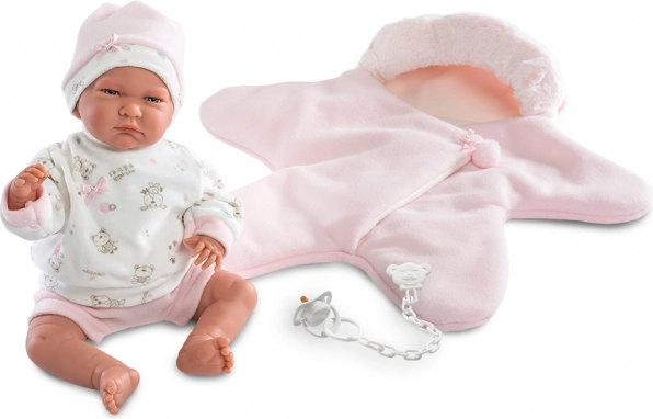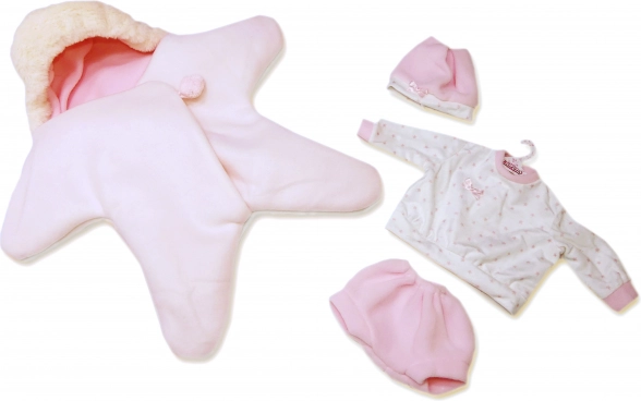 Verwen je pop met uitzonderlijk comfort en stijl met deze 3-delige Llorens-outfit. Het pronkstuk van de set is de omkeerbare fleece onesie in stervorm, heerlijk zacht, warm en perfect om mee te knuffelen of voor winterse wandelingen met de pop. Dankzij het universele formaat past hij uitstekend op NEW BORN-poppen van 40–42 cm.