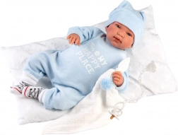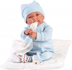 Schattige set kleding voor de NEW BORN-pop van het merk Llorens in maat 43–44 cm die elke kleine verzorger zal bevallen. Bevat een 3-delige outfit, een zacht kussentje/matje en een knuffeldoekje met pompon. Kwaliteitsvolle Spaanse productie, aangename materialen en veilige uitvoering voor kinderen vanaf 3 jaar.
