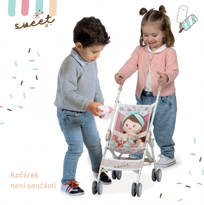 De pluche pop Sweet behoort tot een geliefde collectie met speelse motieven van taartjes en ijsjes. Dankzij haar zachte lijfje is ze veilig en ook geschikt voor in het bedje. Het lage gewicht en de compacte afmetingen maken haar tot de perfecte metgezel voor op reis en thuis.