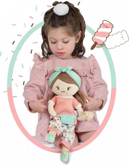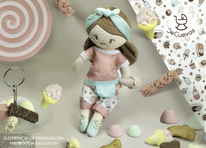 Schattige pluche pop Sweet van 36 cm, het ideale eerste vriendinnetje voor de allerkleinsten. Gemaakt van zachte, glanzende pluche, zeer licht, heerlijk knuffelbaar en met de hand wasbaar op 30 °C. Harmonieus gekleurde tinten met een ijsjesmotief en een Spaans design toveren een glimlach op het gezicht van elke kleine prinses.