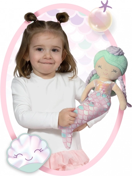 Ontdek de magische wereld met de pluchen pop Ocean Fantasy, die dankzij de verwijderbare stoffen hoes verandert van een kleine zeemeermin in een meisje. De pop is gemaakt van hoogwaardig glanzend pluche en