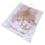 Bevat een jurk, muts, haarband, sokken en sjaal die vrij gecombineerd kunnen worden.