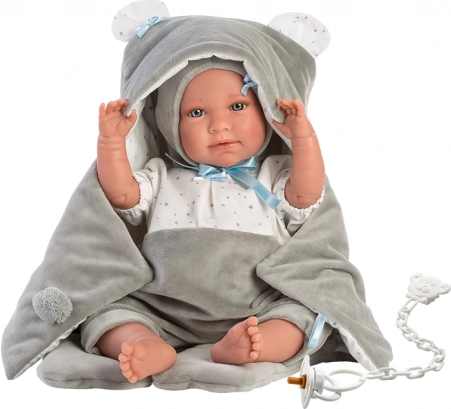 2-delige outfit voor een babypop, inclusief een snelslaapzakje voor het autostoeltje en een decoratief zakdoekje. Ideaal voor poppen van 40-42 cm.
