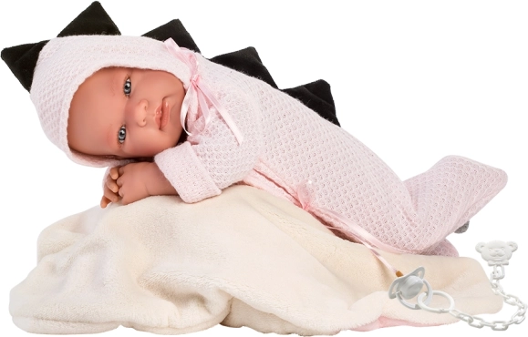 Kleertjes voor pop met dinosaurusstijl, ideaal voor kinderen vanaf 3 jaar. Ontworpen voor New Born poppen van 43-44 cm, biedt een warm en comfortabel milieu dankzij de fleece slaapzak.