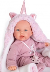Antonio Juan Petit is een zorgvuldig met de hand gemaakte realistische pop die kinderen zachte geluidjes en een prettig gevoel biedt. Het zachte stoffen lijfje nodigt uit om te knuffelen, terwijl het hoofd en de ledematen van hoogwaardig soft vinyl natuurlijk aanvoelen en gemakkelijk te onderhouden zijn. Bij het indrukken van het buikje zegt de pop “mama”, “papa” en lacht ze, wat de ontwikkeling van de verbeelding en verzorgende vaardigheden stimuleert.