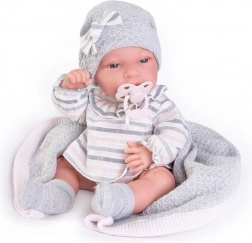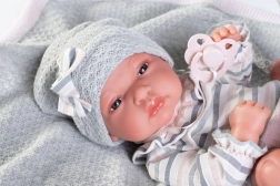 De schattige baby ANTONIO JUAN met een volledig vinyllichaam van 33 cm zal alle kleine verzorgers blij maken. Hij is gemaakt van speciaal verzacht vinyl, heeft realistische details van een pasgeborene inclusief geslacht en kan zorgeloos in bad (behalve de wimperzone). Inclusief cadeaudoos en hoogwaardige afwerking met aandacht voor ecologie en duurzame materialen.