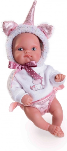 Knuffelige witte outfit met roze details, oortjes en hoorn stimuleert de verbeelding en maakt van de pop een magische speelkameraad voor elke dag.