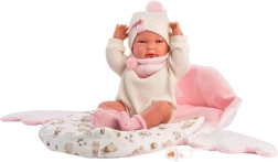De pop wordt geleverd met schattige kleding en accessoires, waaronder een hoed en een speen, die haar realisme vergroten.