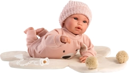De Llorens New Born pop bootst een pasgeboren baby natuurgetrouw na. Ze heeft een zacht stoffen lichaam om fijn te knuffelen, scharnierende ledematen en is poseerbaar, zodat ze ook kan zitten. Handmatige afwerking zorgt voor precieze details en hoogwaardige kwaliteit.