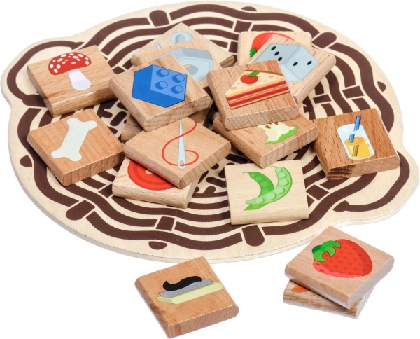 In de set zitten ook 4 zwart-wit voorbeeldkaarten voor snelle observatiespelletjes en oefening in sorteren. De tegeltjes kunnen na het spelen worden opgeborgen in de sluitbare linnen zak, zodat er niets verloren gaat. De houten elementen hebben gladde randen en heldere, begrijpelijke illustraties voor makkelijke herkenning, inclusief uitdagers zoals paddenstoelen – sommige eetbaar, andere niet-eetbaar.