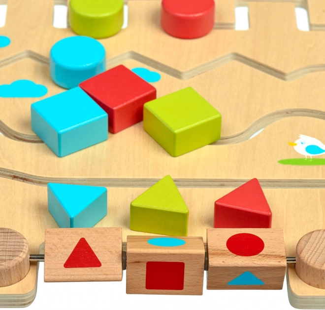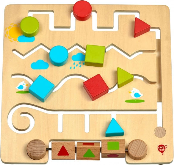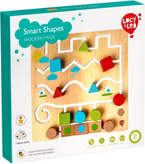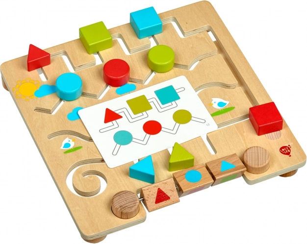Houten doolhof met geometrische vormen en voorbeeldkaarten LUCY & LEO