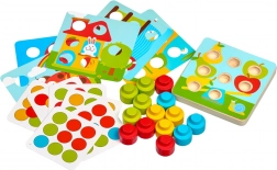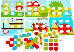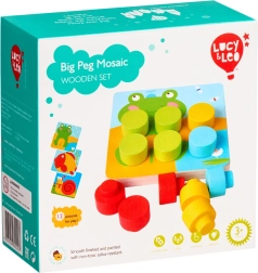 Ontdek creatief spel voor kinderen vanaf 3 jaar – een kleurrijke mozaïek met grote pinnen van LUCY & LEO, die fijne motoriek, kleurenherkenning en creatief denken stimuleert. De set bevat een houten basis met gaten, 14 grote houten pinnen en 12 dubbelzijdige voorbeeldkaarten met vrolijke motieven voor eindeloos leggen. Veilige afwerking en duurzame materialen garanderen langdurig plezier.
