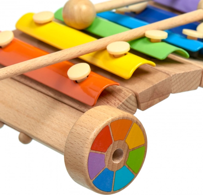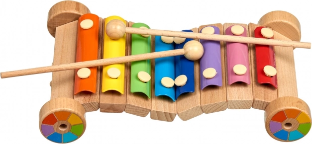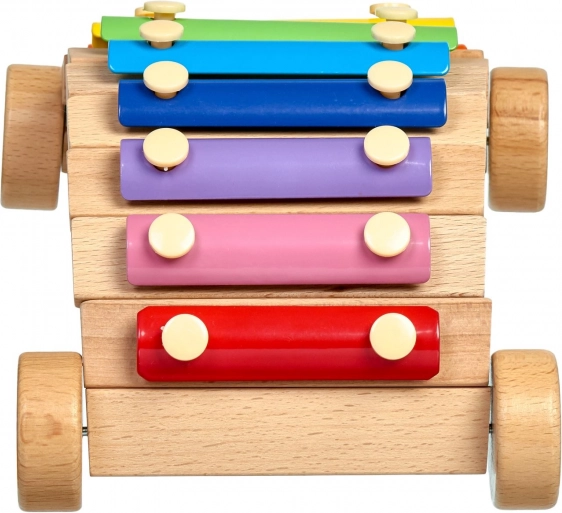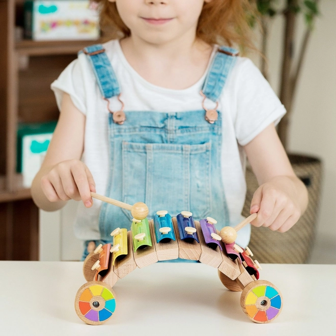 Het houten onderstel met wieltjes maakt het mogelijk de xylofoon te trekken of te duwen, waardoor muziek leren nog leuker wordt.