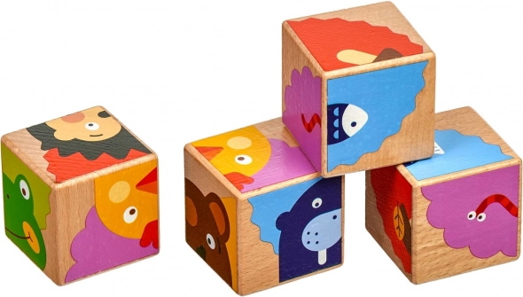 Met vier houten blokjes leggen kinderen tot wel zes verschillende afbeeldingen volgens de meegeleverde voorbeelden. Elke draai brengt een nieuwe, leuke opdracht en houdt de aandacht van kleine bouwers vast.