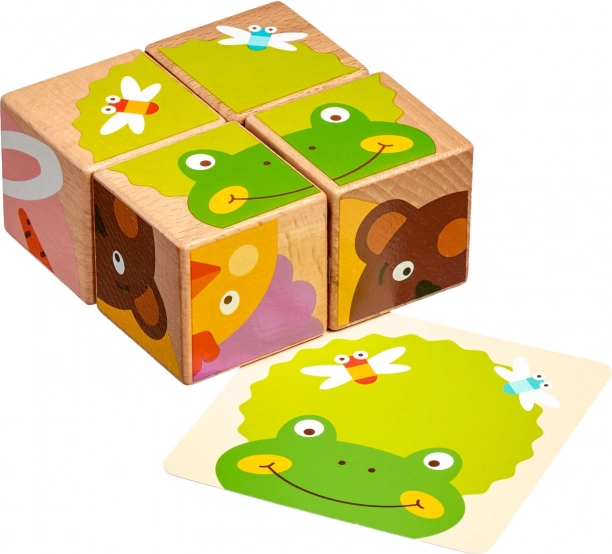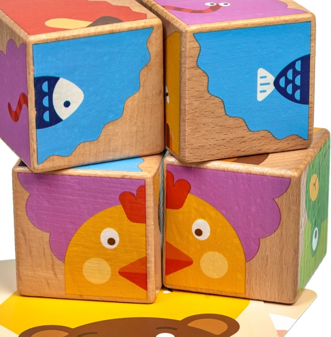 Een set van vier houten blokjes van LUCY & LEO met vrolijke dieren en hun favoriete snacks stimuleert de fantasie van kinderen, fijne motoriek en logisch denken. Van de blokjes kun je tot wel 6 verschillende afbeeldingen leggen aan de hand van voorbeeldkaarten. Het speelgoed is gemaakt van hoogwaardig hout met een veilige afwerking en is ideaal voor jonge kinderen vanaf 3 jaar. Leren door te spelen, kleuren oefenen, oog-handcoördinatie en puzzelen met plezier in één.