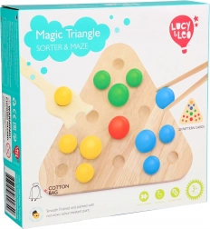 Het dubbelzijdige houten spel Magische Driehoek 2-in-1 van LUCY & LEO ontwikkelt de fijne motoriek, het logisch denken, de oog-handcoördinatie en het geheugen. Het biedt twee spelvarianten – een sorteerspel met voorbeeldkaarten en een doolhof – en is een geweldige Montessori-hulpmiddel voor kinderen.