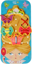 Kinderen versieren het kapsel van de prinses met kroontjes, strikjes of vlindertjes en creëren eindeloze combinaties naar eigen fantasie.