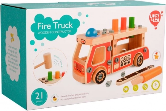 Bouw je eigen houten brandweerwagen en ontwikkel vaardigheden met de Montessori constructieset van LUCY & LEO. Kinderen genieten van het inslaan van pinnen met het hamertje, schroeven en bouwen met 21 onderdelen, terwijl ze fijne motoriek, oog-handcoördinatie, kleuren- en vormherkenning en geduld trainen. Veilige niet-giftige verven en een duurzame houten uitvoering garanderen langdurig speelplezier.