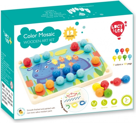 De set biedt tal van speelmogelijkheden: mozaïeken leggen volgens sjablonen of eigen fantasie, sorteren op kleur, pinnen tellen of de greep oefenen. Na het spelen gaan de pinnen eenvoudig in het linnen zakje – alles blijft zo overzichtelijk en klaar voor nieuw knutselplezier.