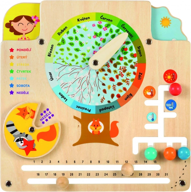 Deze houten leerplaat werkt als een Montessori-hulpmiddel – stimuleert zelfstandig ontdekken, visualisatie en het koppelen van informatie aan het dagelijks leven. Dankzij de hoogwaardige afwerking en bewegende elementen is leren op een natuurlijke manier leuk.