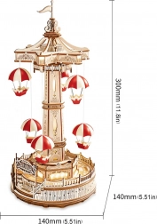 Breng de magie van het pretpark in huis met deze gedetailleerde 3D puzzel van een muziekdoos – parachutemolen. Het model biedt motorische aandrijving, LED-verlichting, touchbediening voor beweging en geluid en speelt de romantische melodie Falling Flower af. Je krijgt 184 nauwkeurig uitgesneden onderdelen, hoge moeilijkheidsgraad en een indrukwekkend resultaat dat sfeer creëert dankzij de transparante ramen en drie lichtpunten.