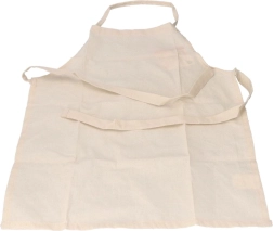 Het schort is makkelijk wasbaar in de wasmachine tot 30°C en wordt vastgebonden in de nek en rond de taille voor comfortabel dragen. Afmetingen: 42,5 x 54,5 cm, geleverd in een natuurlijke crèmekleur.