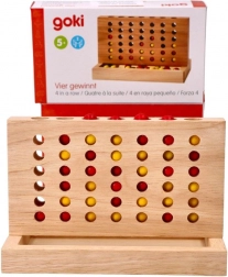 Goki houten spel Vier op een Rij is een strategisch bordspel dat eindeloze uren plezier biedt voor twee spelers. Het doel is om als eerste vier schijfjes op een horizontale, verticale of diagonale rij te krijgen.