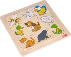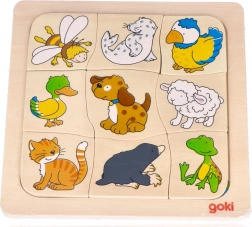 De houten inlegpuzzel GOKI “Wie woont waar?” is een ideale eerste puzzel voor kinderen vanaf 2 jaar. Dankzij de gefreesde contouren op de stevige houten onderplaat zijn de stukjes makkelijk te vinden en in te leggen, waardoor op speelse wijze de fijne motoriek, oog-handcoördinatie en het geduld worden ontwikkeld. Het thema helpt kinderen op een natuurlijke manier de dierenwereld en hun leefomgeving te ontdekken.