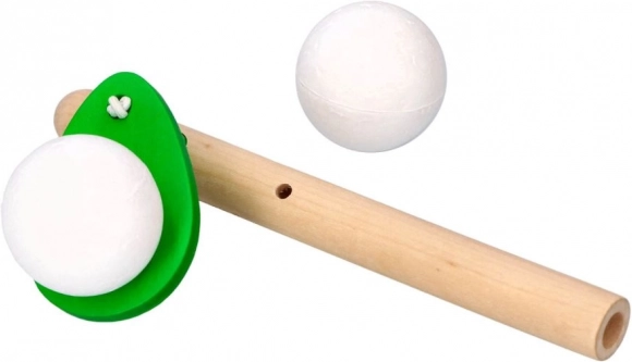 Een leuk en eenvoudig blaasspel van GOKI, waarbij je door in het houten pijpje te blazen de zwevende bal zo lang mogelijk in de lucht houdt. Een geweldig hulpmiddel voor ademtraining, logopedische ondersteuning en coördinatie. Afmetingen blaaspijpje 15 × 5 cm, bal Ø 3 cm. Geleverd in een mix van kleuren.