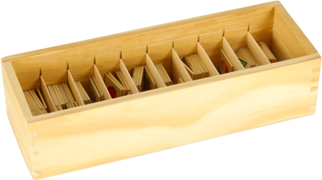 De veilige afwerking met glad geschuurde randen en de stevige houten doos met geventileerde kunststof deksel zorgt voor een lange levensduur en handig opbergen van alle onderdelen. De set is ideaal voor thuis leren en voor kleuterscholen.